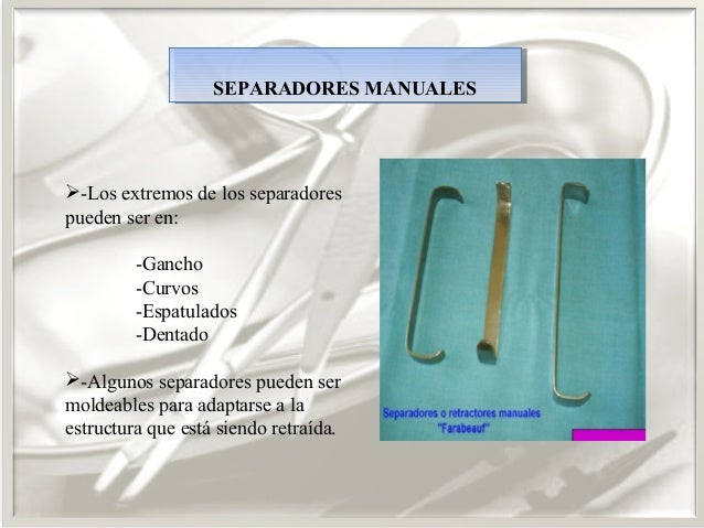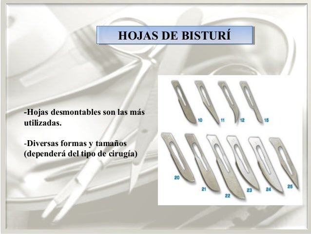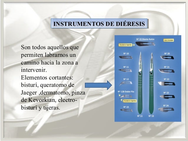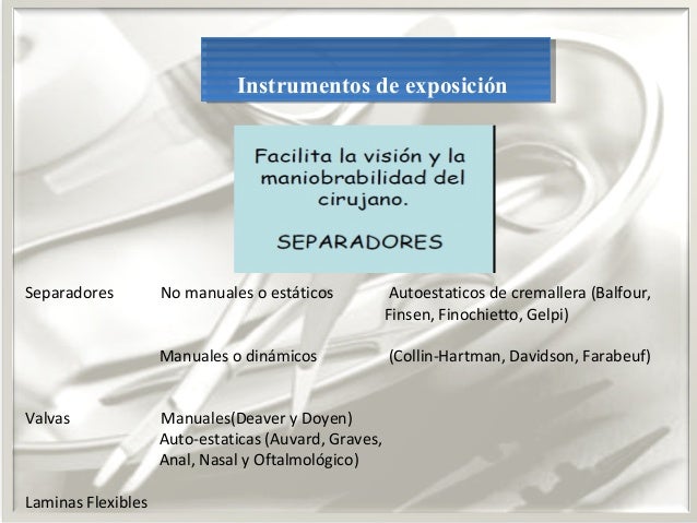 instrumentales según el tipo de cirugía